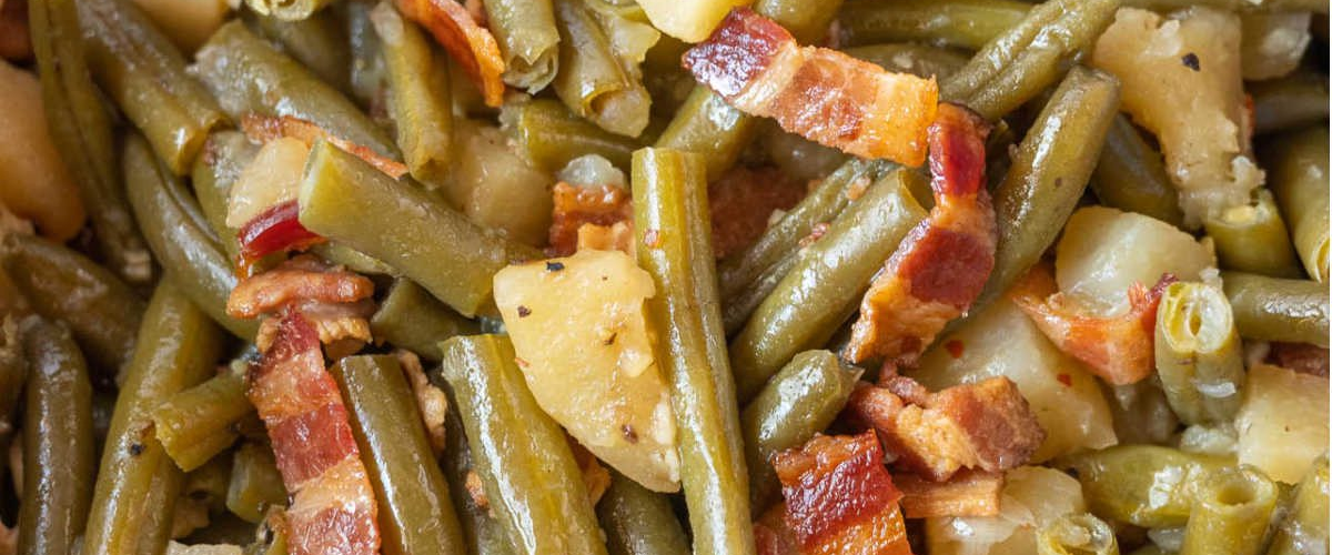 Pomalu vařené zelené fazolky s bramborami a slaninou – recept z jihu USA