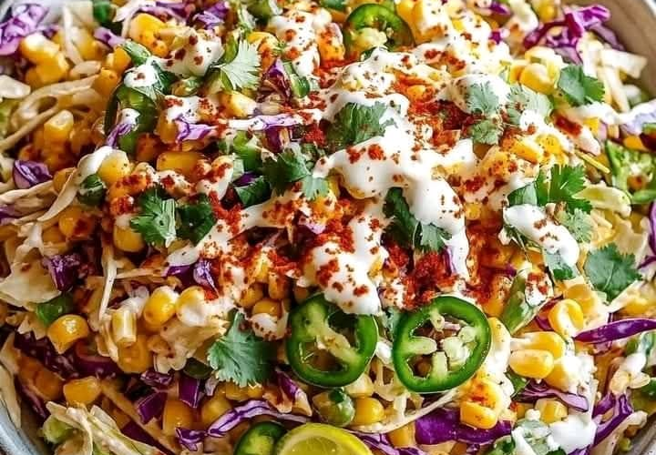 Tento coleslaw inspirovaný mexickou kuchyní je plný barev a chutí. Kombinuje křupavé zelí, sladkou kukuřici, koriandr a výraznou zálivku s limetkou a kořením. Skvělý jako příloha k masu nebo samostatný lehký pokrm.