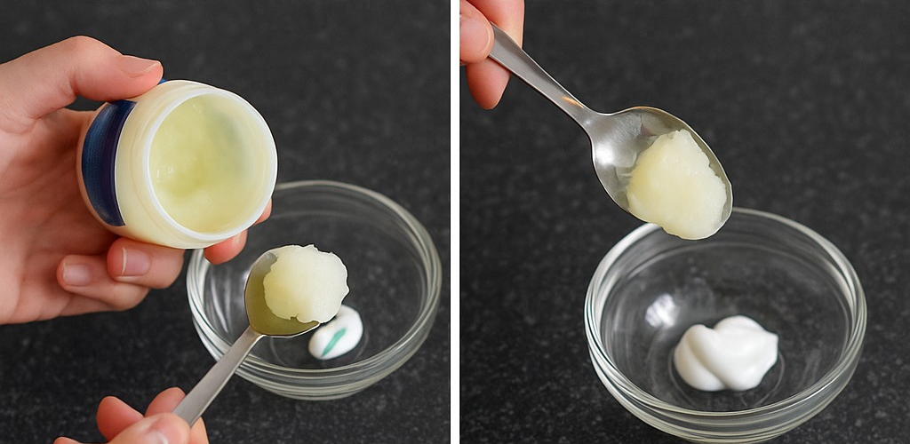 - Smíchejte malé množství zubní pasty s trochou vazelíny.